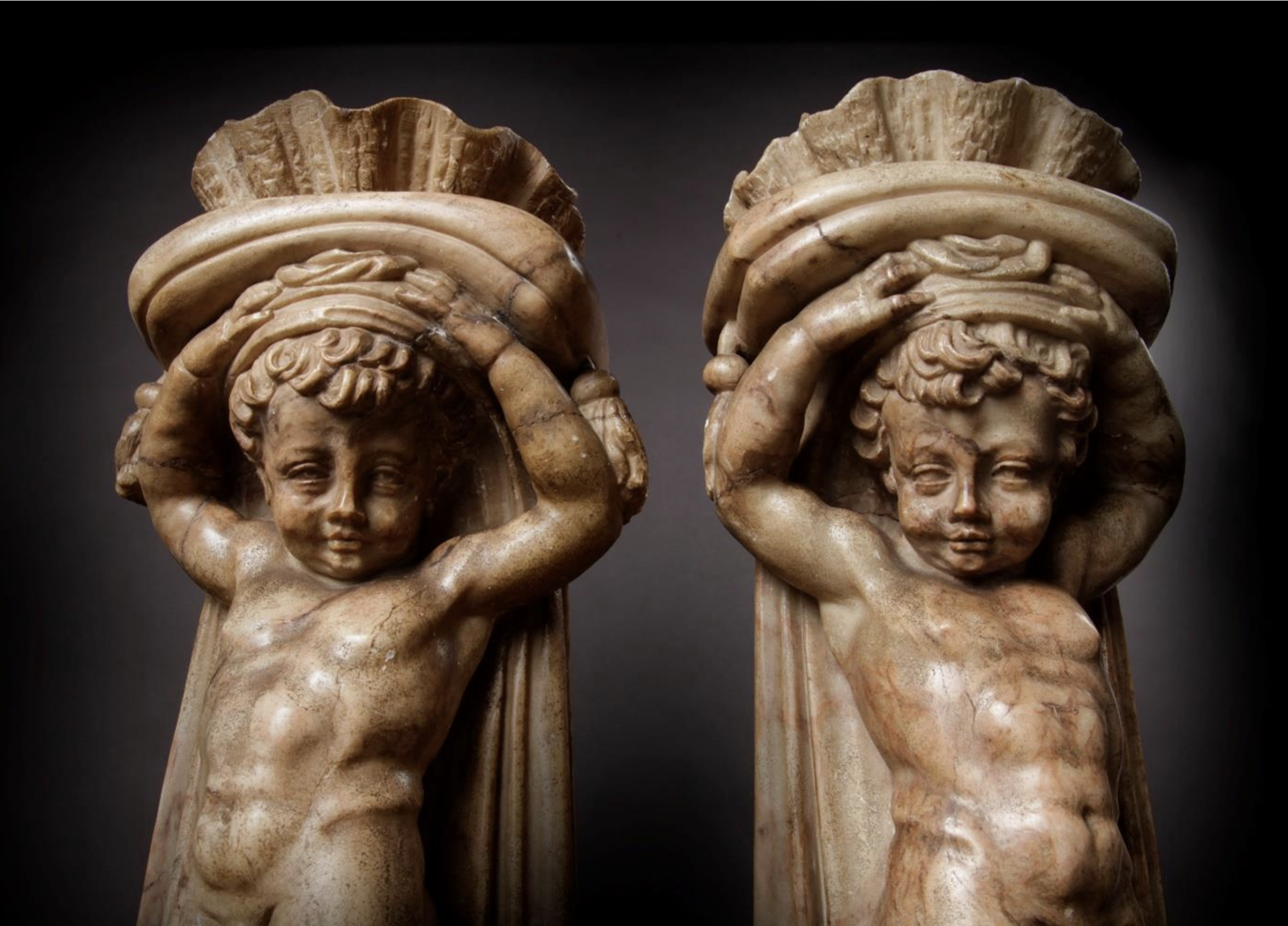 Œuvres présentées : Deux putti atlantes en albâtre attribués à Cornelis Floris II de Vriendt (1513-1575) 1560 - 1563