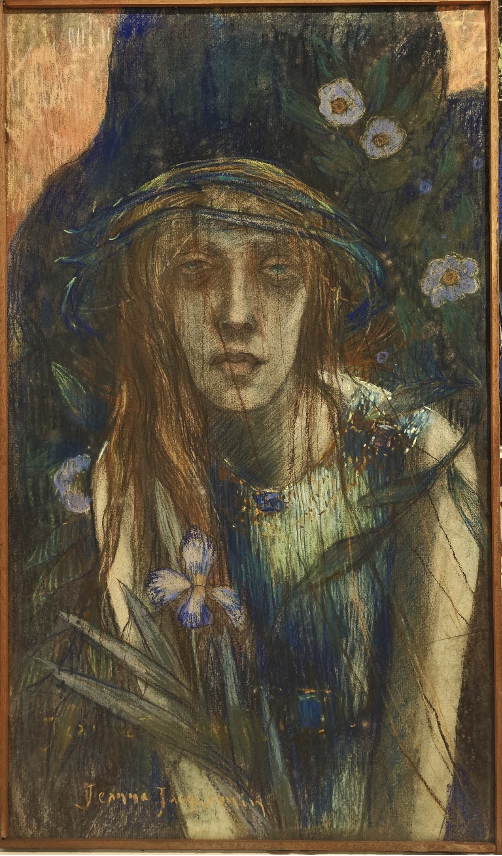 Jeanne Jacquemin fait figure d’artiste mythique, adulée par ses amis artistes, la connaissance de son œuvre reste à faire et doit l’être tant le pastel que nous présentons aujourd’hui est imprégné de toutes les marques du symbolisme.